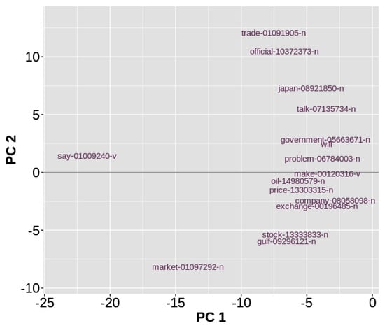 Both entities (terms and documents) admit joint representation onto a factorial space based on the transition relations between and [31] and the dual analysis of the columns of X and the rows. Joint representation becomes possible through the rescaling factor or a biplot representation [7,32].