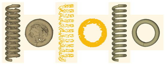 Figure 3 presents an illustration of 3D optimal point selection in comparison to a direct carving 3D reconstruction and the reference surface. As evident, a significant number of 3D points are accurately generated, faithfully representing the actual object. In contrast, the direct carving method results in the creation of numerous synthetic bulges within the spring’s interior, making any quality assessment process unfeasible, while BCPS successfully circumvents this issue.