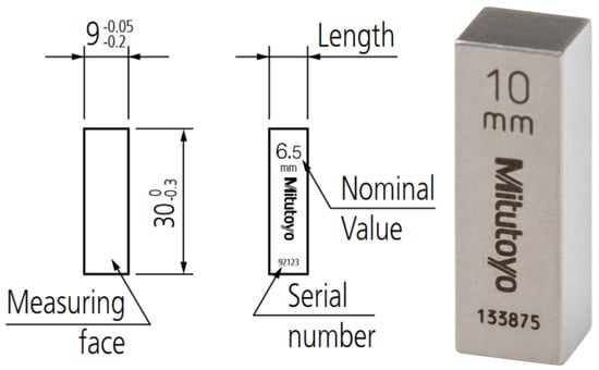 Regarding the calibrated gauge, it was not feasible to physically modify the real object to simulate size changes. Instead, a meticulous adjustment of the camera calibration was performed to induce object scaling. This calibration alteration was verified through simulations, yielding results consistent with directly scaling the object. Figure 4 displays the dimensions and tolerances of this calibrated gauge.