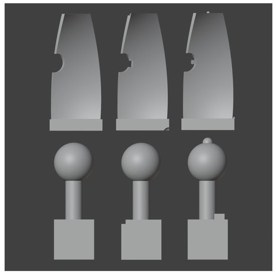 Designed 3D objects to evaluate BCPS: turbine blade and cube-sphere. From left to right no defect, missing material and extra material version.