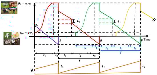 Alfares and Afzal [26] formulated a nonlinear programming model to represent an inventory system for growing items. It considers various factors such as permissible shortages, imperfect quality items, and holding costs throughout both the growth and consumption periods. Similarly, Mittal and Sharma [27] presented a mathematical model that considers growing items, such as chickens, to optimize inventory. The optimal inventory is then utilized to maximize the retailer’s total profit, considering the possibility of deferred payments. Luluah et al. [28] developed an EOQ model for growing items that considers the imperfect quality and cumulative discount offered by the supplier when purchasing newborn items. Gharaei and Almehdawe [29] introduced a sustainable EOQ model aimed at determining optimal and sustainable ordering policies and cycle lengths for growing products, which provides a valuable tool for agricultural industries seeking to enhance their sustainability practices. In a different study, Mahato et al. [30] investigated inventory control and pricing policies within a two-echelon supply chain involving growing items and trade credit financing. De-la-Cruz-Márquez et al. [31] developed an inventory model for growing items that accounts for imperfect quality and carbon emissions. Additionally, the demand rate is price-sensitive and can be described by a polynomial function. Maity et al. [32] developed an EOQ model for fishery culture using a real-life case study that assumes that the growth rate of fish can be estimated by a linear function.