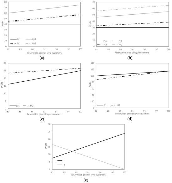 Based on Equations (1) and (2), each group buys the product, , at discriminated prices, i.e., . represents the price paid by deal prone customers and represents the price paid by loyal customers. represents the quantity demanded by deal-prone customers.