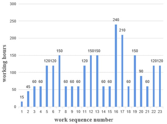 This paper analyzes and optimizes the production line as an example of a curtain wall factory producing monolithic curtain walls.The production process of a unit curtain wall is shown in Figure 3, and the working time of each process is shown in Figure 4, from which it can be seen that the production process of a unit curtain wall consists of 23 processes, and the total processing time is 2310 s. According to the production line balance model, the balance rate of the curtain wall production line is calculated to be 57.04%.