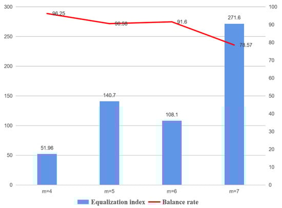 The optimization of the curtain wall production line is carried out by selecting the number of workstations , respectively, and the resulting program operation results in the balance rate and the balance index of the production line, which are calculated by the previous equations, as shown in Table 1.