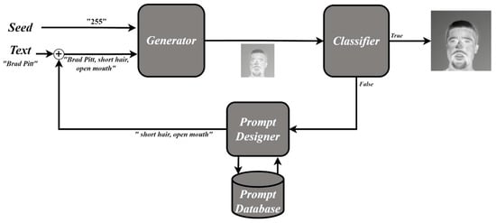 - Prompt Designer and Prompt Database: To ensure the creation of the optimal text, we have designed a specialized text creator that allows for large variations and automatic search for the best possible text. The output text () is designed from a main text () and the flag text (). The main text contains the primary feature to be generated, such as names of celebrities, animals, or specific items. This text remains unchanged during the search process as it contains our main topic that must persist during the generation process. Conversely, the flag text is meticulously crafted by selecting a set of ‘n’ words through a comprehensive search process. During the refinement stage, this text undergoes variations in both word selection and quantity. The flag text encapsulates distinctive features and incorporates carefully chosen words to facilitate prompt engineering. If the quality of the generated image meets the required standards, it is added to the final database. However, if the image is of poor quality, the search process is initiated using the Prompt Designer until the desired category is achieved. This iterative process allows for the generation of high-quality images that match the desired category, thereby ensuring that only high-quality images are included in the final database.