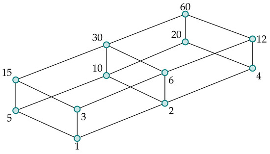 Then, is a lattice. Moreover, this is a CDL with 0 and 1 as the top and bottom elements, respectively. Figure 1 depicts a finite sublattice having integer divisors of 60.