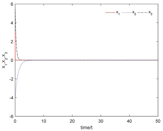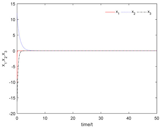 Select the following initial conditions: , , and . Figure 3 shows that the controlled nominal system (4) is asymptotically stable with respect to the origin.