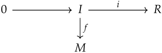- For any hyperideal I of R, an inclusion hyperring homomorphism and a normal R-homomorphism , there exists a normal R-homomorphism such that the diagram in Figure 1 has the composition structure, i.e., .