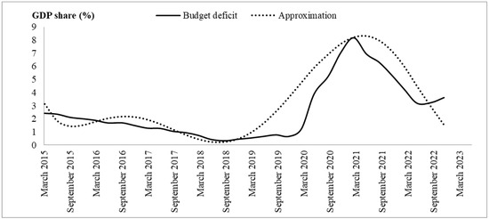 Figure 5 presents the quarterly dynamics of the Eurozone budget deficit between March 2015 and March 2023 [40].