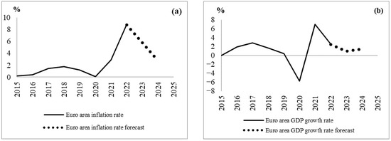According to expert forecasts [41], the following macroeconomic indicators are expected in the Eurozone for 2023–2024 (Table 1):