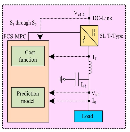 The objective of FCS-MPC for inverter operation could be the matching grid connection, motor torque, flux, speed control, capacitor voltage balancing, or loss balancing. A dynamic model of the inverter is derived based on the inverter, load, and filter terminal voltages and currents. The dynamic model of the LC filter can be given as: