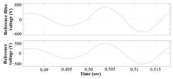 - Output Filter: For the five-level inverter, the filter inductor sizing can be performed aswhere the variables VDC, fsw, and ∆I(p−p) are the dc-bus voltage, switching frequency, and allowed peak-to-peak current ripple respectively. Considering a bus voltage of 400 V, average switching frequency of 10 kHz, and current ripple of 1 A, the minimum inductance is 2.5 mH. A 2.8 mH inductor is chosen to meet the design criterion.