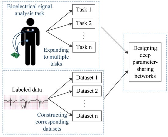 This section presents the proposed deep multi-task learning approach for bioelectrical signal analysis. As shown in Figure 2, our scheme consists of three main subprocesses. Specifically, for a bioelectrical signal analysis task, we first expand it into several similar and related subtasks, which is a task space partitioning process. Then, based on these subtasks, we convert the original dataset to sub-datasets to adapt to the multiple subtasks. Finally, we design a generic parameter-sharing neural network to train these subtasks simultaneously in a deep multi-task setting.