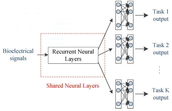 We also implement RNN to extract features. As shown in Figure 5, for task i, the parameter-sharing neural networks extract hidden representation vector from the bioelectrical signal via a shared recurrent neural layer. In the parameter-sharing convolutional neural networks, task i appends two fully-connected layers to the output of the recurrent neural layer to conduct binary classification.