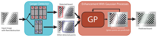 The proposed processing pipeline for enhancing a detected checkerboard using GP.