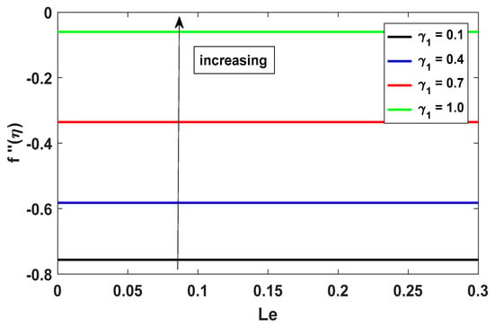 A plot of the Cf viscosity parameter vs. the Lewis number is illustrated in Figure 10. The Cf rises when the viscosity parameter is increased. It can be seen that an increase in skin friction occurs for the viscosity parameter. This helps enrich the momentum boundary layer, while the inverse occurs on the stretching surface.