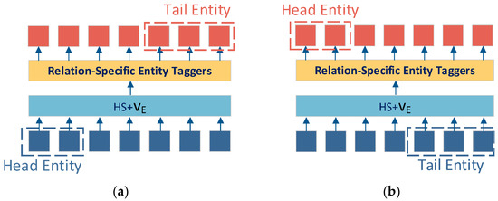 We used an entity tagger to identify head entities at the very beginning of the research on framework development and used the identified head entities to find related relations and tail entities. During the experiments, it was found that if there is a head entity in the entity tagger that is missing, this triple will be missed in the final triple prediction, especially in the case of overlapping triples where a head entity corresponds to more than one related tail entity. There are also cases where some of the tail entities related to this head entity are missed when performing the triple extraction; in this case, we can better find these missing tail entities by adding a tail entity recognition module to the entity tagger. So, two matching entities and accurate relations between entities are achieved by adding a tail entity recognition module to the entity tagger, and by looking up the corresponding relation and another matching entity in the relation-specific entity taggers.