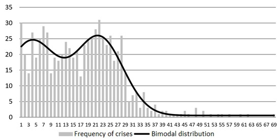 Summary graph of the economic crises of the XX–XXIV centuries (see Table A1).