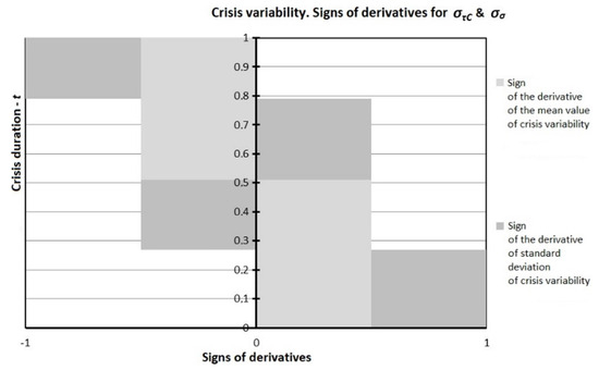 where C is the indication of the presence of a crisis; is the indication of the absence of a crisis; H is the Heaviside function; is the standard deviation of price fluctuations for the analytical period; and is the accumulated standard deviation.