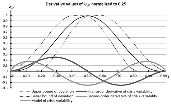 where I is the intensity of the crisis; ; H is the Heaviside function; is the standard deviation of price fluctuations for the analytical period; and is the accumulated standard deviation.