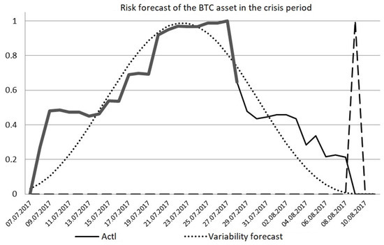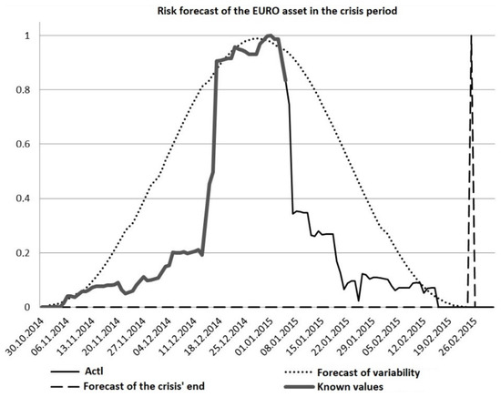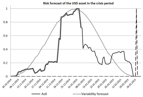 Thus, the risk of a crisis decline in the asset price is calculated according to Formula (12):