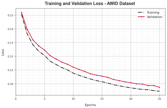 In Figure 10, the and curves of the NIDS-LOFSDL approach on the AWID dataset are shown. corresponds to the error between the predictive solution and the original values of the TR data. signifies the performance outcomes of the NIDS-LOFSDL technique on individual validation data. The outcomes imply that both and values tend to decrease with increasing numbers of epochs. The outcomes represent the enhanced performance of the NIDS-LOFSDL technique and its capability to produce accurate classification. The decreased and values demonstrate the better solution of the NIDS-LOFSDL technique in terms of capturing the patterns and relationships.