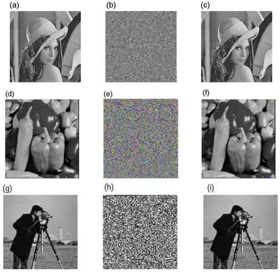 Encryption and decryption of some gray images via the method based on the new Jerk-like system with a memristor. (a) Original Lenna image; (b) encrypted Lenna image; (c) decrypted Lenna image. (d) Original Peppers image; (e) encrypted Peppers image; (f) decrypted Peppers image. (g) Original image of camera man; (h) encrypted image of camera man; (i) decrypted image of camera man.