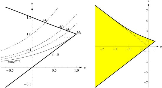 Theorem 1 shows that when studying the stability of family (1), we can set . Then, for , the solution to problem (5) is decreasing on some nonempty interval ; for , the solution of problem (5) is .