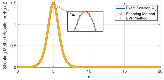 was subjected to the shooting method. Figure 3 displays a comparison of the analytic and numerical solutions obtained using the aforementioned numerical approaches, all of which were identical. The accuracy of the analytical solution could, therefore, be checked using this method. The acquired numerical solution can serve as an initial condition for the numerical scheme discussed in the following section.