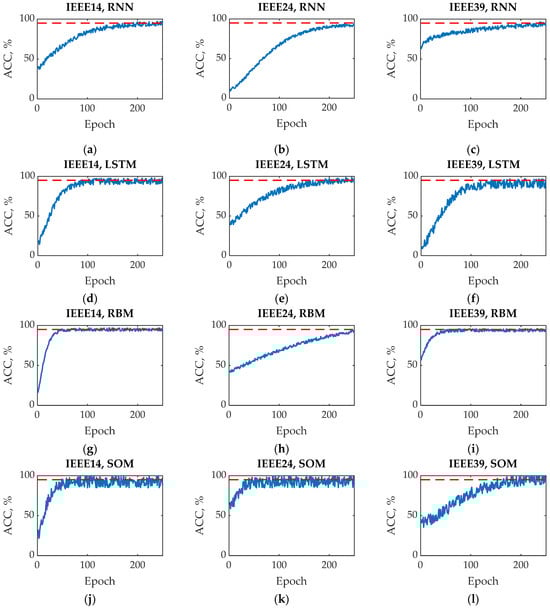 To ensure the required frequency level in isolated EPSs, the authors of [34] proposed an algorithm based on the use of DL. The proposed algorithm was tested on the EPS IEEE37 mathematical model. For the considered test scenarios, the results of calculating the accuracy of CA determination and the time delay required to analyze one emergency process are not provided. The authors argue that a promising direction for the development of the proposed algorithm is to reduce its computational complexity. Work [35] discusses the use of DL to ensure the required frequency level in isolated EPSs with RESs. The work also does not provide the results of determining the accuracy and time delays of the algorithm.
