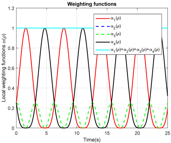 It is worth noting that the parameters and are governed by the functions and , respectively. The weighting functions for each vertex (where i ranges from 1 to 4) are illustrated in Figure 2.