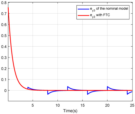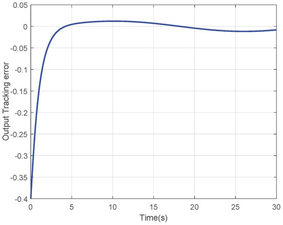 For a more comprehensive assessment of the system’s performance, we present the simulation results for the tracking error of the output in Figure 5. It is evident that the actual output from the LPV system under the influence of the developed FTTC closely follows its reference trajectory with remarkable accuracy, even in the presence of actuator and sensor faults and disruptive external disturbance. This underscores the effectiveness of our proposed controller in compensating for fault effects, enabling precise tracking of the desired trajectory.