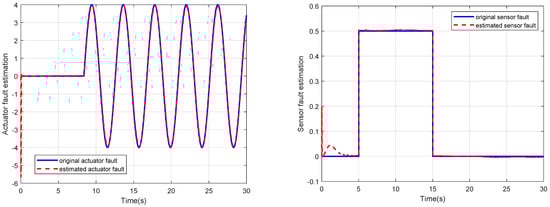 Actuator fault and its estimated fault (left) and sensor fault and its estimated fault (right).
