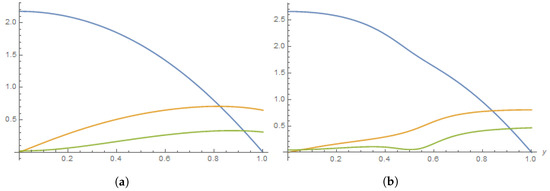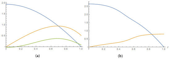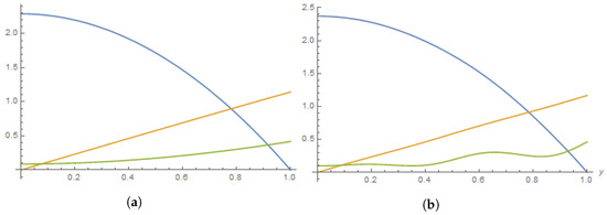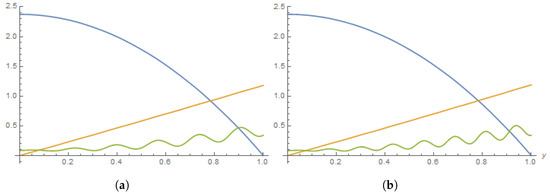 Let us comment on the physical sense of and . To this end, we consider a simple isotropic case where and . In such a case, Equation (23) is equivalent to the following: