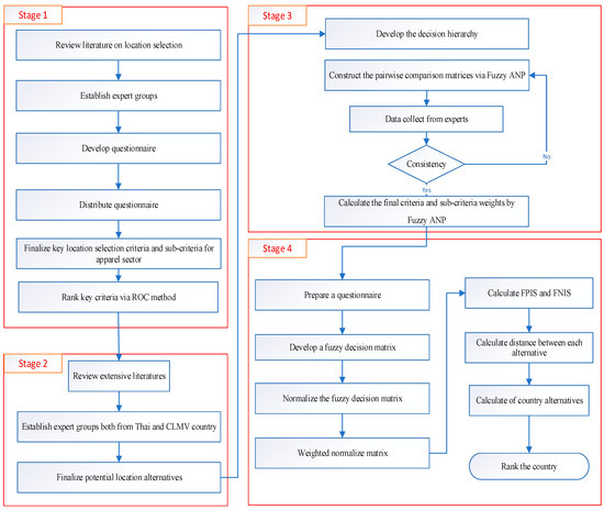 This research paper presents an all-encompassing methodology for multi-criteria decision-making in the apparel sector, with the particular objective of aiding in the determination of the most appropriate location within the CLMV subregion. The research is conducted in three crucial stages. The process began with the administration of a survey to proprietors of garment businesses in both Thailand and the CLMV countries. This survey resulted in the compilation of an exhaustive list of site-selection criteria and sub-criteria. Based on the findings of subject matter-expert interviews, Cambodia (C), Vietnam (V), and Myanmar (M) were identified as feasible alternatives. Subsequently, the questionnaire criteria and sub-criteria were evaluated utilizing the Fuzzy Analytic Network Process (Fuzzy ANP), which involved the utilization of meticulously designed pair-wise comparison matrices and local priorities. Five specialists from the Thai entrepreneurial community affirmed the effectiveness of Fuzzy ANP and expressed interest in expanding manufacturing operations in the CLMV subregion. The optimal location for Thai apparel manufacturers was subsequently determined using the Fuzzy Technique for Order of Preference by Similarity to Ideal Solution (Fuzzy TOPSIS). The results indicated that Vietnam is the most favorable option. In order to improve the dependability of results, an amended mixture-design scenario analysis was implemented. This analysis assessed the sensitivity and dependability of the proposed model in different scenarios, ensuring its applicability in real-world situations. In contrast to traditional models, this study integrates managerial judgments and preferences into the decision-making procedure, thereby accounting for the complex interdependencies among numerous criteria. The suggested methodology functions as a beneficial instrument for decision-makers, both domestic and international, as it integrates effortlessly into the organizational structure of the CLMV region. By harmonizing objectives pertaining to data acquisition, manipulation, retention, and dissemination, this framework not only enables enhanced decision-making processes, but also optimizes system efficiency.