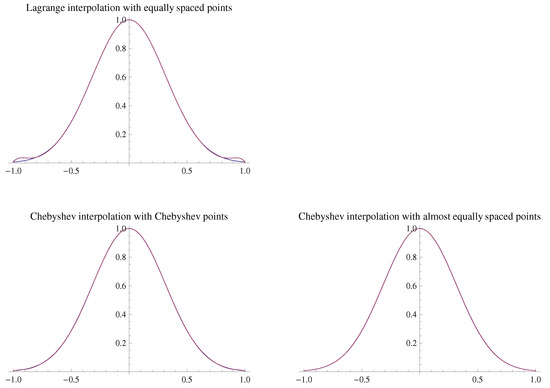 In Equation (16), the equally spaced points are in descending order, following the trend of the roots of the Chebyshev polynomial, as in Equations (5) and (13). Clearly, in this case, we cannot apply Chebyshev interpolation since the values of in the roots of are unknown.