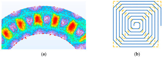 Eddy current path and octagonal spiral model of APMC: (a) eddy current path based on COMSOL; (b) octagonal spiral model.