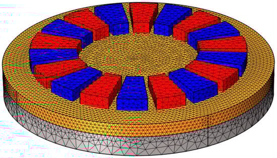 A 3D finite element model based on Table 1 is conducted to verify the accuracy of the EMC model, and the meshes are divided according to the materials of each part of the APMC and their influence on the magnetic field. Figure 9 shows the division of 969,944 elements using a fixed calculation method, which allows for the simulation of the magnetic field and output torque separately, collecting more actual results that are difficult to acquire experimentally.