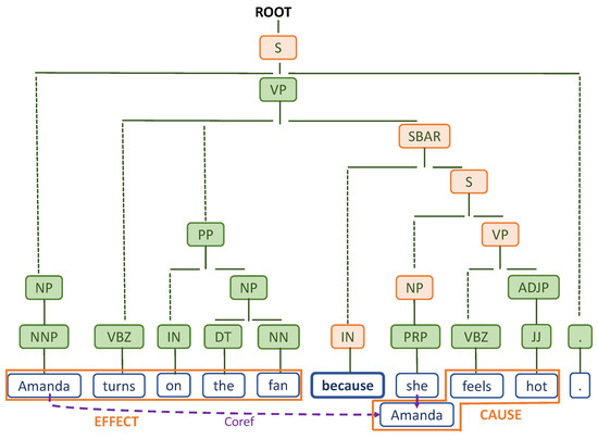 - Cue Sentences Collection. We begin by collecting sentences containing either “because” or “so” through regular expression matching. These sentences are then processed using the Stanford CoreNLP [38] tools for tokenization, POS tagging, constituent parsing, and dependency parsing.