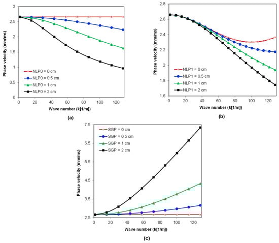 (a) Role of zeroth-order nonlocal parameter (NLP0) in the phase velocity of in-plane waves propagated within the intermediate-grade IDC as the most common type of breast cancer, which starts from the breast milk ducts and spreads to other tissues. The elastic properties of the intermediate IDC were adopted from the available clinical data [28]. (b) Role of first-order nonlocal parameter (NLP1) in the phase velocity of in-plane waves propagated within the intermediate-grade IDC. (c) Role of the strain gradient parameter (SGP) in the phase velocity of in-plane waves propagated within the intermediate-grade IDC tissue. The IDC is known as the most frequently encountered breast cancer, which accounts for about 75–80% of all breast cancer types that exhibit invasiveness [71]. The thickness of the tissue sections was 1 cm while the tissue length and width were 10 cm.