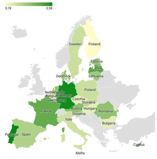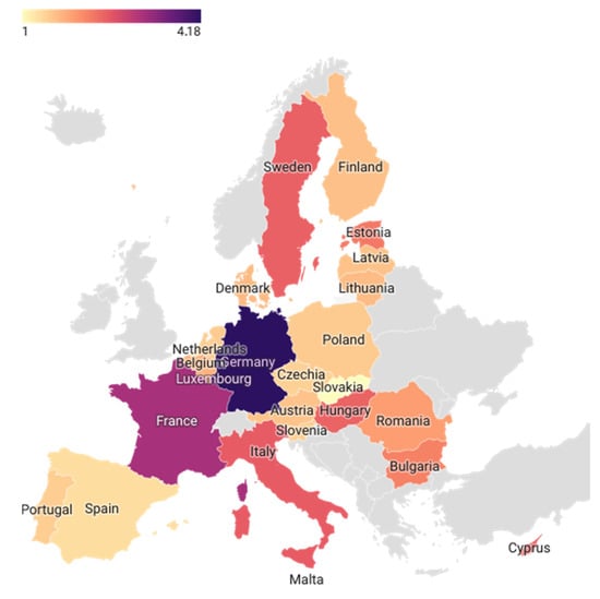 Summarizing the results of the analysis of economic, environmental, and social sustainability, we can conclude that Germany and France are the leaders of sustainable development among the EU countries (Figure 25).