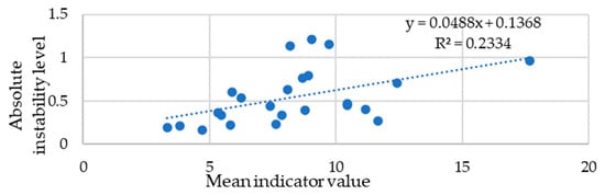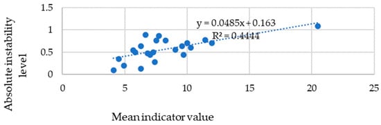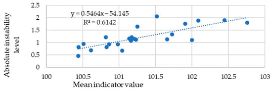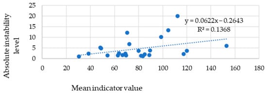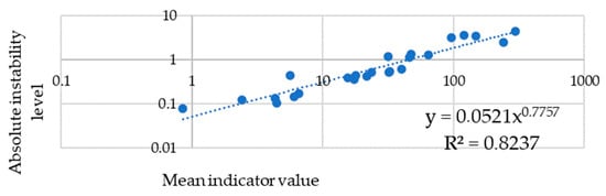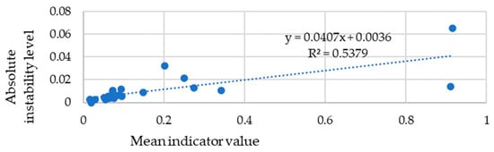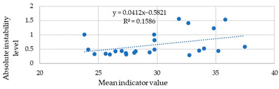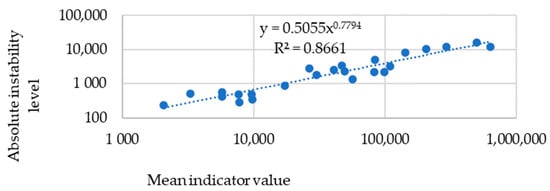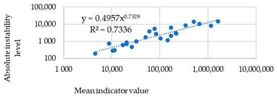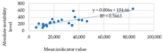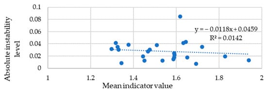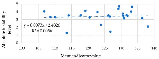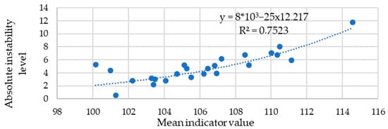Aggregation of indicators into composite indices of economic, environmental, and social sustainability was carried out by calculating Mahalanobis distances—mean normalized distances of each country to the center. The level of instability is measured using the mean square deviation of the Mahalanobis distances regression residuals: the greater the deviation, the greater the instability, as it indicates the large discrepancies between the observed and predicted values.