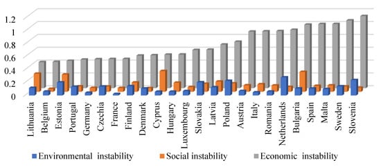 - Based on the Eurostat’s 12-year period data, the levels of social, economic, and environmental sustainability of 24 EU countries were determined. Individual instability indicators of 15 chosen indicators were determined and analyzed. Mahalanobis distances, relative, and absolute instability levels of each composite indexes were calculated (social, economic, and environmental). The most and least sustainable countries for each component of sustainable development were identified. The case study results derived from spatial and temporal samples are consistent with the currently observed processes in the EU. Developed visual representation of the case study results were made.