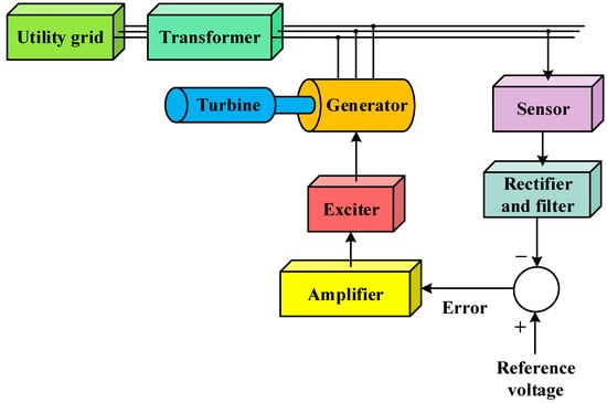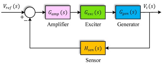 In the realm of power systems, the automatic voltage regulator (AVR) stands as a linchpin, ensuring that connected electrical equipment functions within prescribed voltage bounds []. The consequences of inadequate voltage regulation can be profound, from equipment damage and operational failures to costly downtime and extensive repairs [,,,]. Consequently, the AVR plays a pivotal role in power systems reliant on generators or alternators for electricity generation [,]. While existing control methodologies have achieved some success, they remain encumbered by limitations [], including challenges related to robustness, overshoots, rise times, settling times, and persistent steady-state errors.