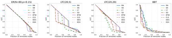 - Nguyen, Q.; Pham, H.-D.; Cassi, D.; Bellingeri, M. Conditional Attack Strategy for Real-World Complex Networks. Phys. A Stat. Mech. Its Appl. 2019, 530, 121561. [Google Scholar] [CrossRef]