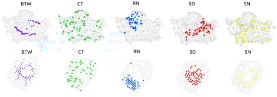 - Freeman, L.C. A Set of Measures of Centrality Based on Betweenness. Sociometry 1977, 40, 35–41. [Google Scholar] [CrossRef]