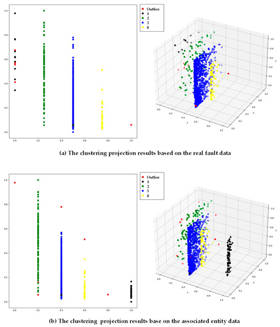 Comparative analysis of the clustering projection results based on the real fault data and the associated entity data.