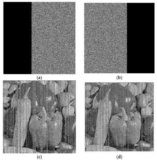 where a = 1.4, b = 0.3. generating chaotic sequences x (n), y (n), and arranged in ascending order. The position of the sorted sequence is recorded using the corresponding position matrix , and the pixel position of the image I is replaced to obtain the scrambled image . such as Equation (11)
