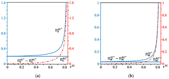 According to the equilibrium profits of the supplier and manufacturer in Table A1, it is clear that and . represents that the government does not subsidize the technology innovation. Therefore, if the government subsidizes the price of the manufacturer’s product, both the supplier and the manufacturer will earn more ex ante profit than if the government does not provide any forms of subsidy, that is, and .