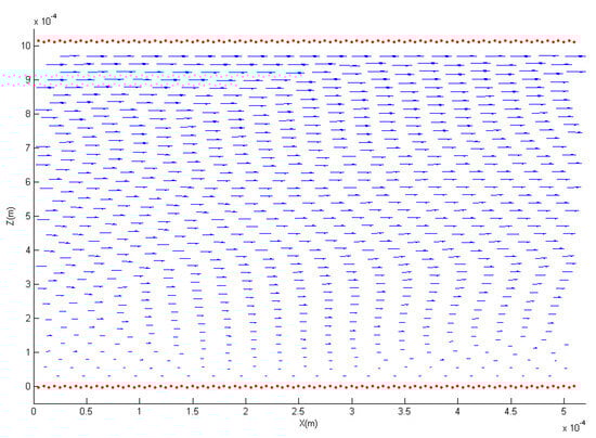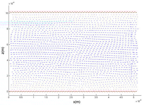 Figure 2. Velocity vector diagram of Poiseuille flow in SPH simulation at 5000 steps.